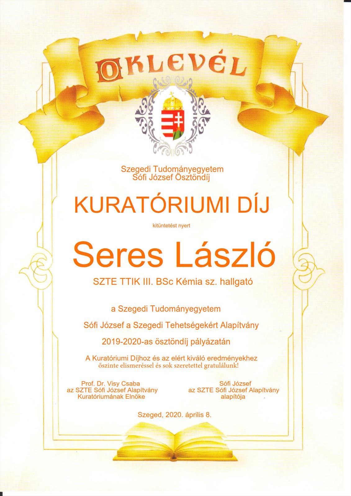 szakdolgozója Seres László immáron másodszor nyerte el a Szegedi